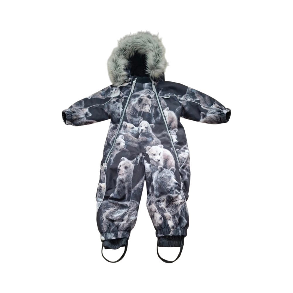 Toppa/talvihaalari karhukuvioinnilla. Hyvä kuntoinen molo Karhu haalari