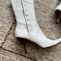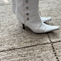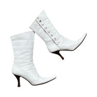 Valkoiset nilkka-saappaat, nappidetaljit ja kapea kärki