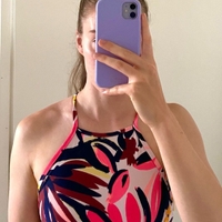 Aerie halterneck-tyylinen värikäs, kuvioitu bikini kokoa S. Muutaman kerran käytetty, priimakunnossa. Säädettävä narukiinnitys.