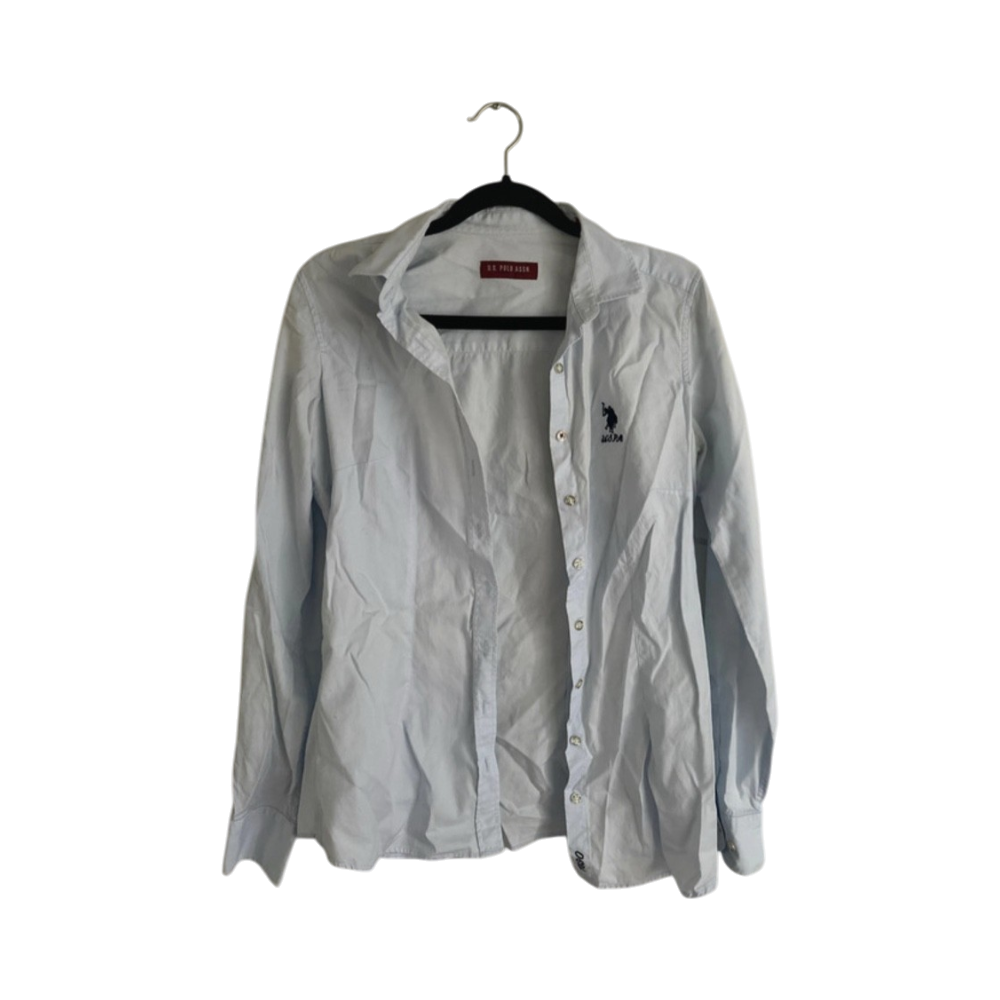 Classic long-sleeve button shirt with embroidered logo, casual wear.