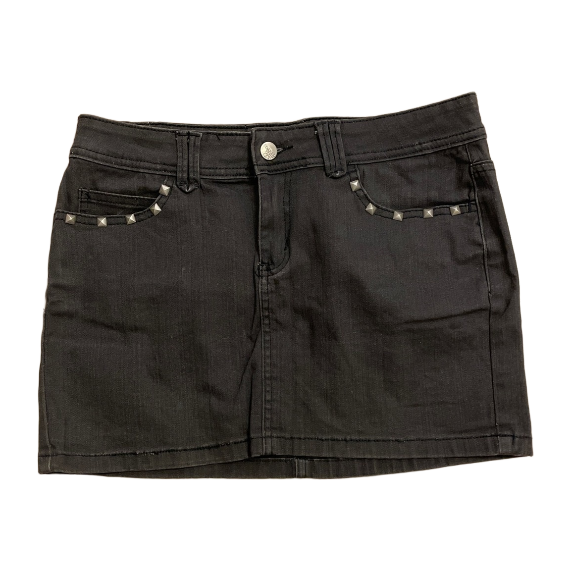 S kokoinen hame jossa niittejä. Väri tummanharmaa, hyvä kunto. #minihame #farkkuhame #niittihame #y2k #rock #2000