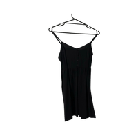 Kevyt musta hihaton mekko, säädettävät olkaimet.