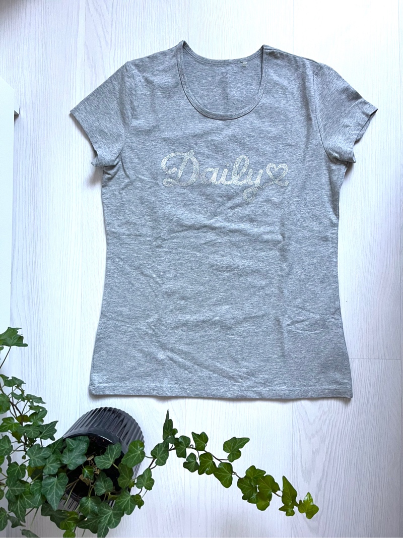 Harmaan erittäin venyvä, mukava päällä ja laadukas Daily Sport merkkinen paita. Ruotsissa tunnett golf merkki 92% puuvillaa ja loput elastaania. Uusi käyttämätön. Ihanalla glitterillä kirjailtu teksti eteen, Y2K tyylinen harmaa T-paita 😍