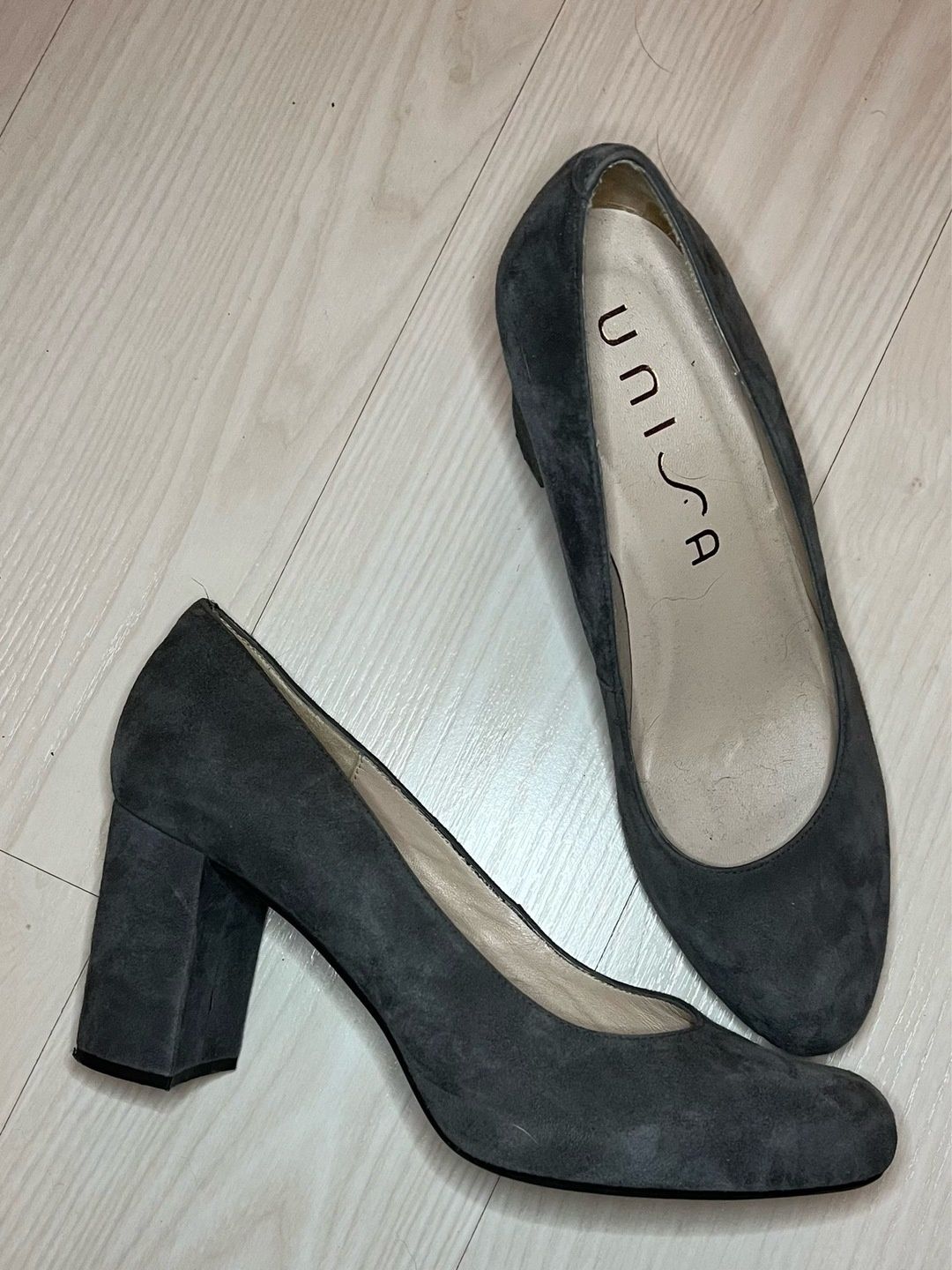 Ihanat tummanharmaat mokkanahka korkkarit tukevalla korolla. Olleet käytössä vain muutamasti. Erittäin hyvä kunto.