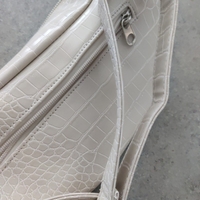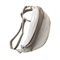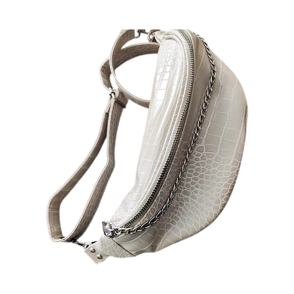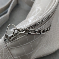 Kompakti vaalea kroko-vyölaukku hopeaketjulla, säädettävä hihna. Käyttämätön.