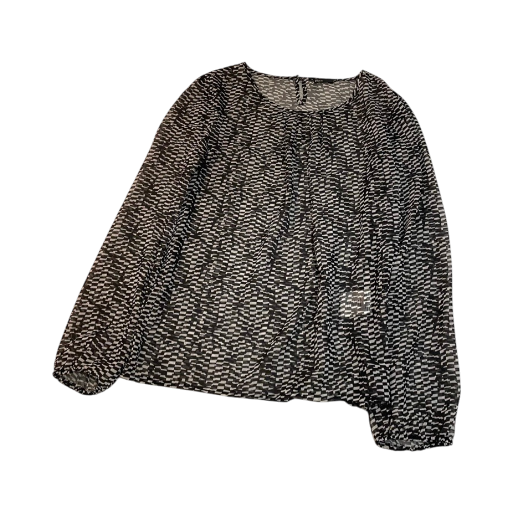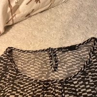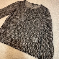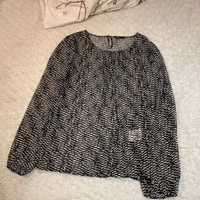 Your Face -merkin juhlava paita koossa M. Vastaa hyvin kokoaan. Ohut, kevyt materiaali. Kuosi on tyylikäs mustavalkoinen graafinen kuvio, ja paita on läpikuultava, joten alle voi halutessaan laittaa topin. Mitat näkyy kuvissa. Kevyt kuviollinen sifonkipusero, pitkä hiha, läpikuultava.