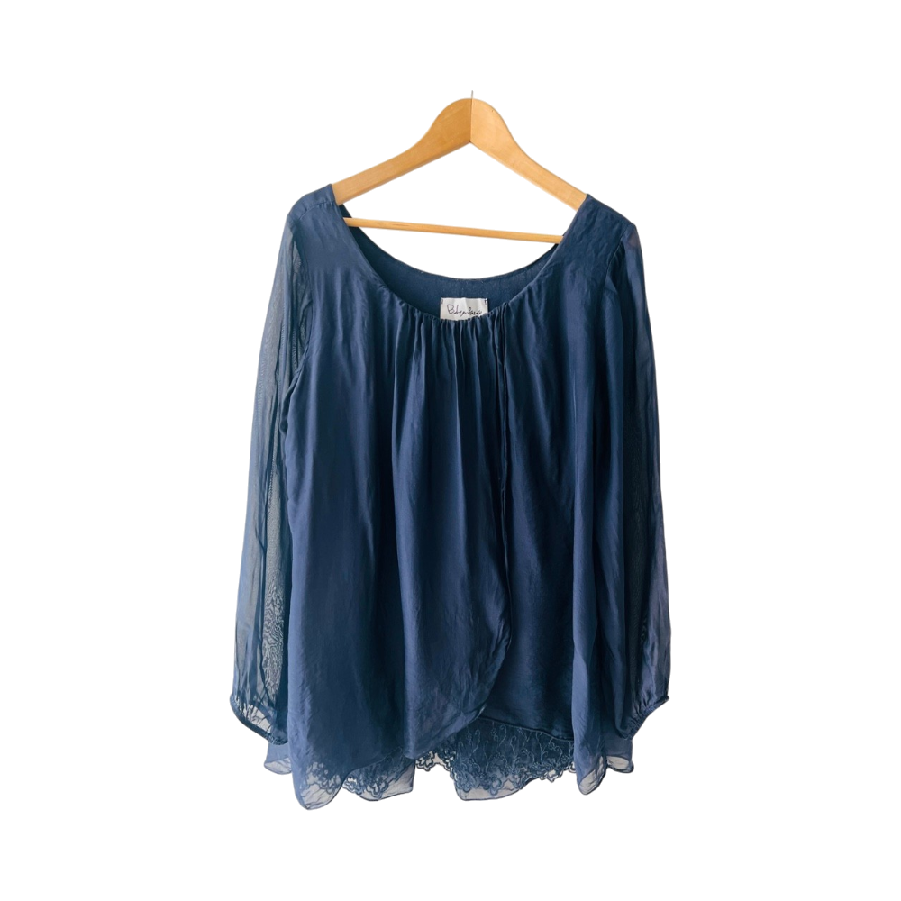 Kaunis Bohemiana silkkipaita, one size. Sopii ainakin koossa s-l, pituus 79cm ja kai kai mitta 54cm. Joustava vuorikangas