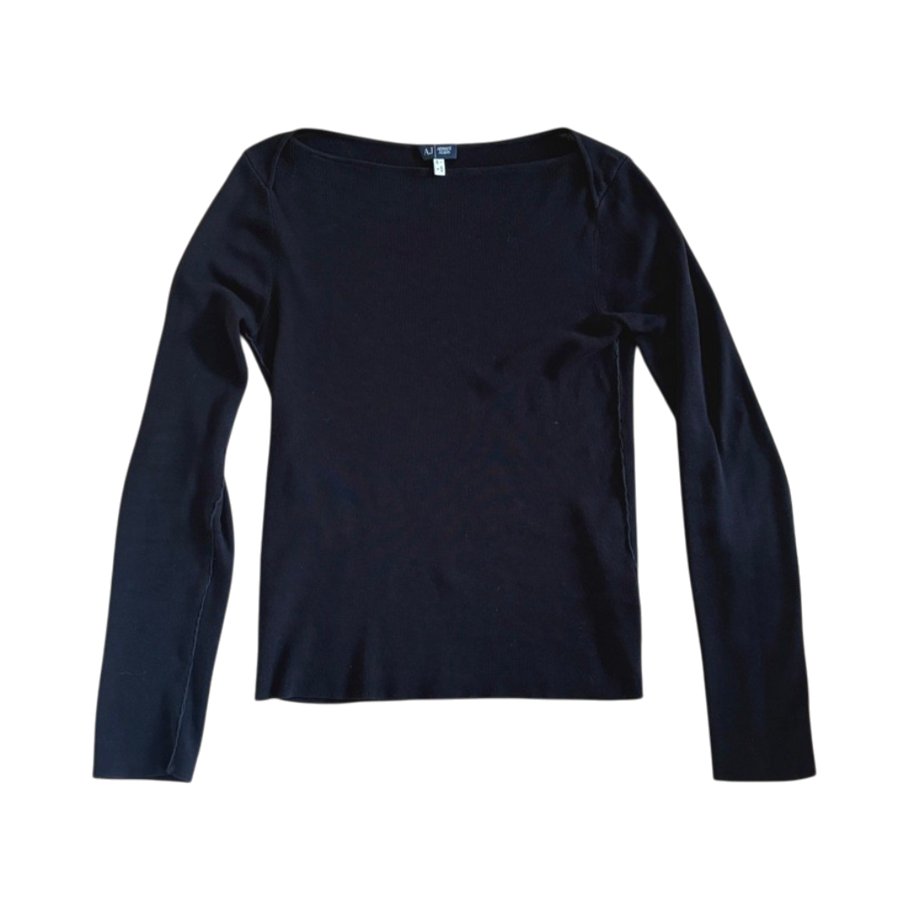 Armani Jeans musta neulepaita 💜 Koko US8, vastaa n S kokoa. Korkea kaulus, sivuilla silkkibrodeeraukset. Olka-helma n 56 ja kainalo-kainalo n 39 (kangas joustaa hieman) #vintage #knitwear #silk #highneck