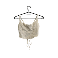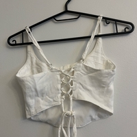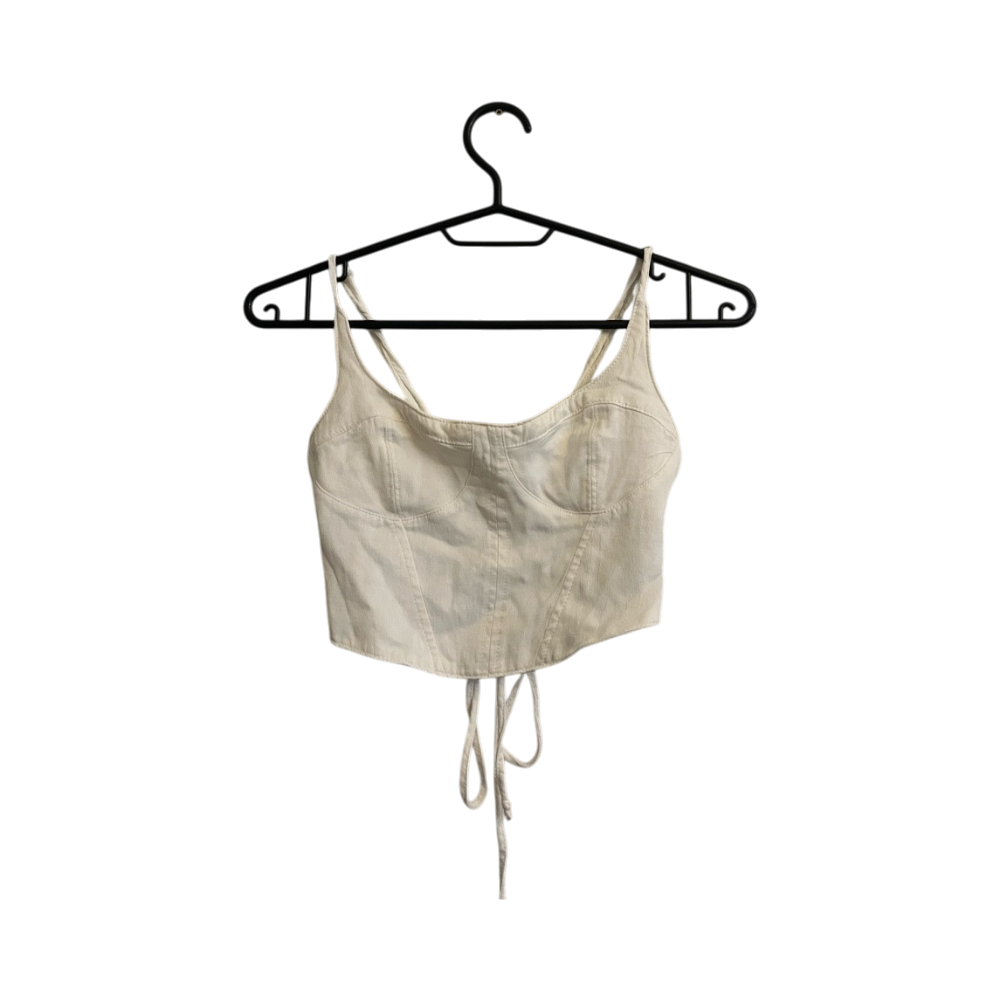 Lyhyt korsettityyppinen toppi, nyöritys takana ja säädettävät olkaimet.