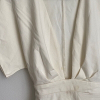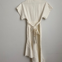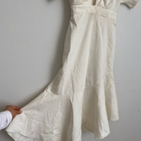 Luonnonvalkoinen paksua trikoota oleva mekko avonaisella kaula-aukolla ja epäsymmetrisellä röyhelöhelmalla. Koko 34/UK4. Ei jousta s-kokoiselle, itselle liian pieni. 2. kuvassa näkyy tahra, jota en ole kokeillut poistaa. Tahra tod. näk. ruokatahra, sappisaippualla vois lähteä! Kerran käytetty. Koodilla SH4752 saat ilmaisen zadaa-toimituksen!