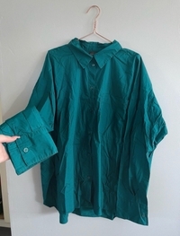 Oversized kauluspaita. Vain kerran käytetty & pesty, naisten tummanvihreä yöpaita (tai ainakin alusvaateosastolta ostettu), H&M. Kunto siis kuin uusi, toki silitystä vailla. Rinnassa yksi tasku.