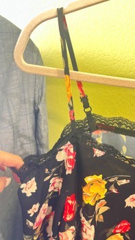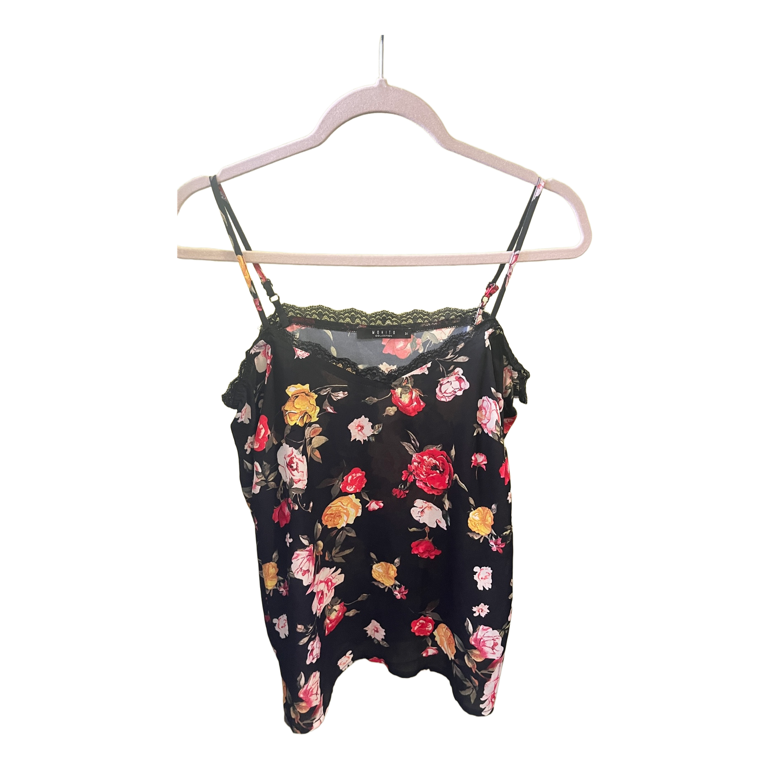 Floral print camisole top with lace trim. Adjustable straps. Material is 100% polyester, size 34.