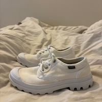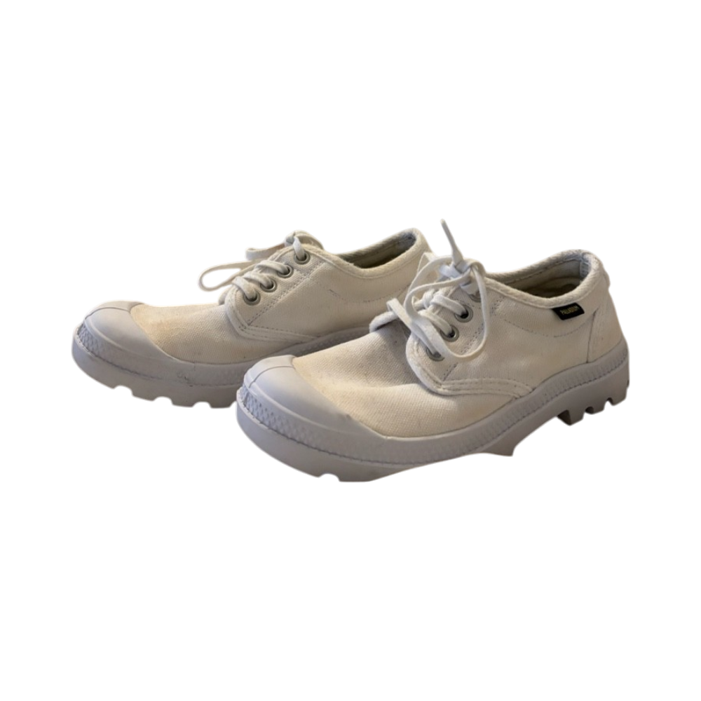 Palladiumin tennarit jotka olleet todella vähällä käytöllä nämä ovat ottaneet vähän väriä häkkivarastossa ja kellertävät mutta uskoisin että pesemällä lähtee. Ei muuta käytön jälkeä tai kulumaa