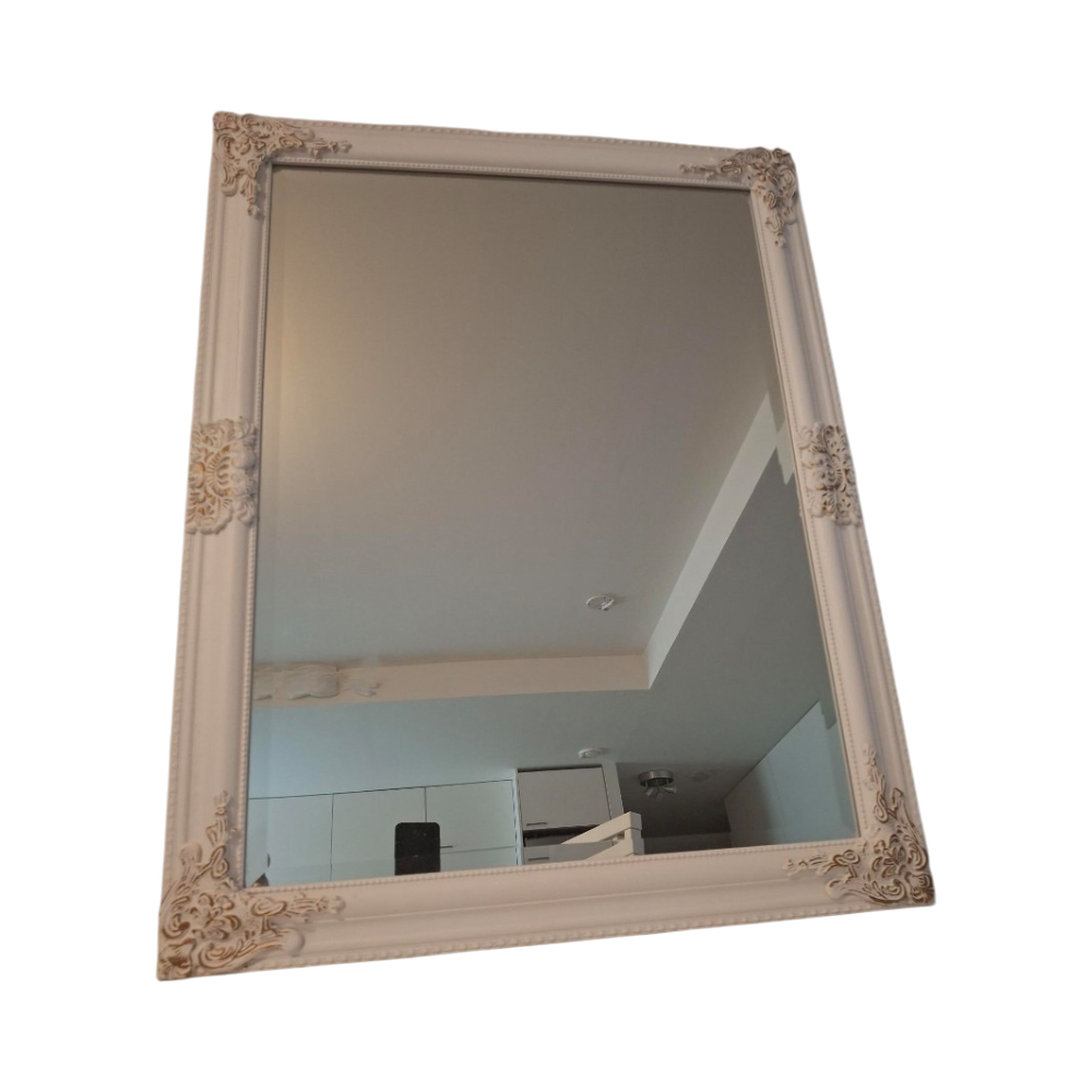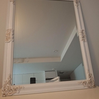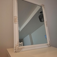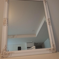 Mukana tulee kiinnitysruuvit ja asennusohje. Itse olen pitänyt pöytätasolla joten niitä ei ole kiinnitetty peiln taakse. Kunto kuin uuden.