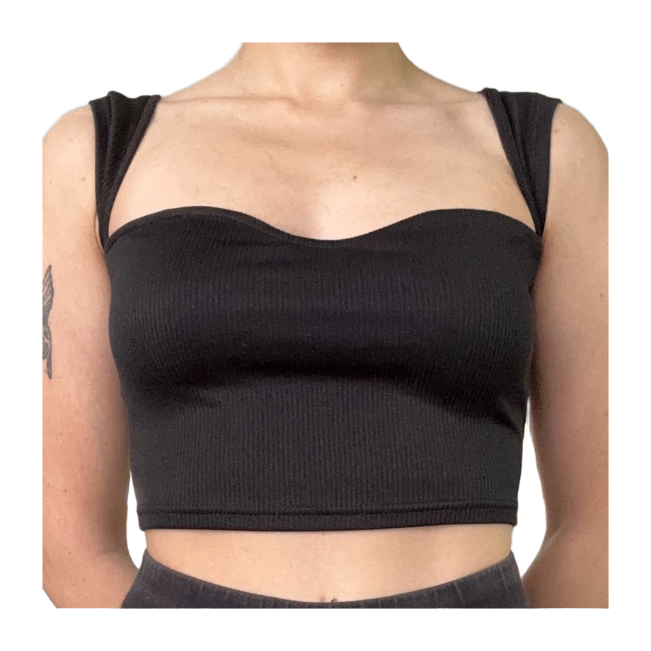 toppi, crop top, musta, black, muotoiltu, sweetheart neckline, XS, S, chic, trendy, bile, party, juhla, club outfit, stylish, elegant, casual, minimalistic, Y2K