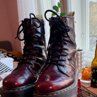 Vegaaniset jadon platform Martensit. Kunto näkyy kuvista. Ovat olleet rakkaat kengät mutta, uusien alta pois. Sivuilla vetoketjut helpottaa käyttöä! Tätä väriä ei ole enää saatavilla.