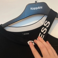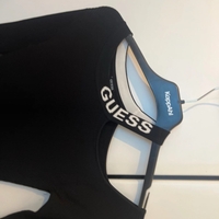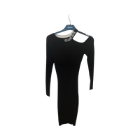 Bodycon-mekko, olkapääaukoilla ja merkkiteipillä kauluksessa.