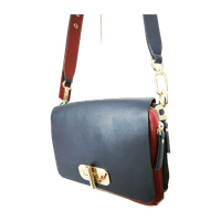 Tummansininen, viinipunainen, kullanväriset metalliosat.