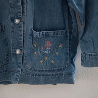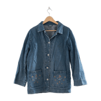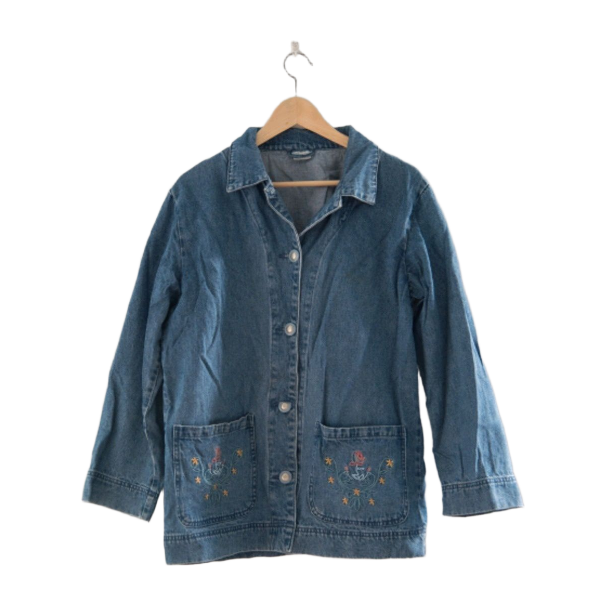 Vintage denim jacket with embroidery. Cute, relaxed fit. Size L.