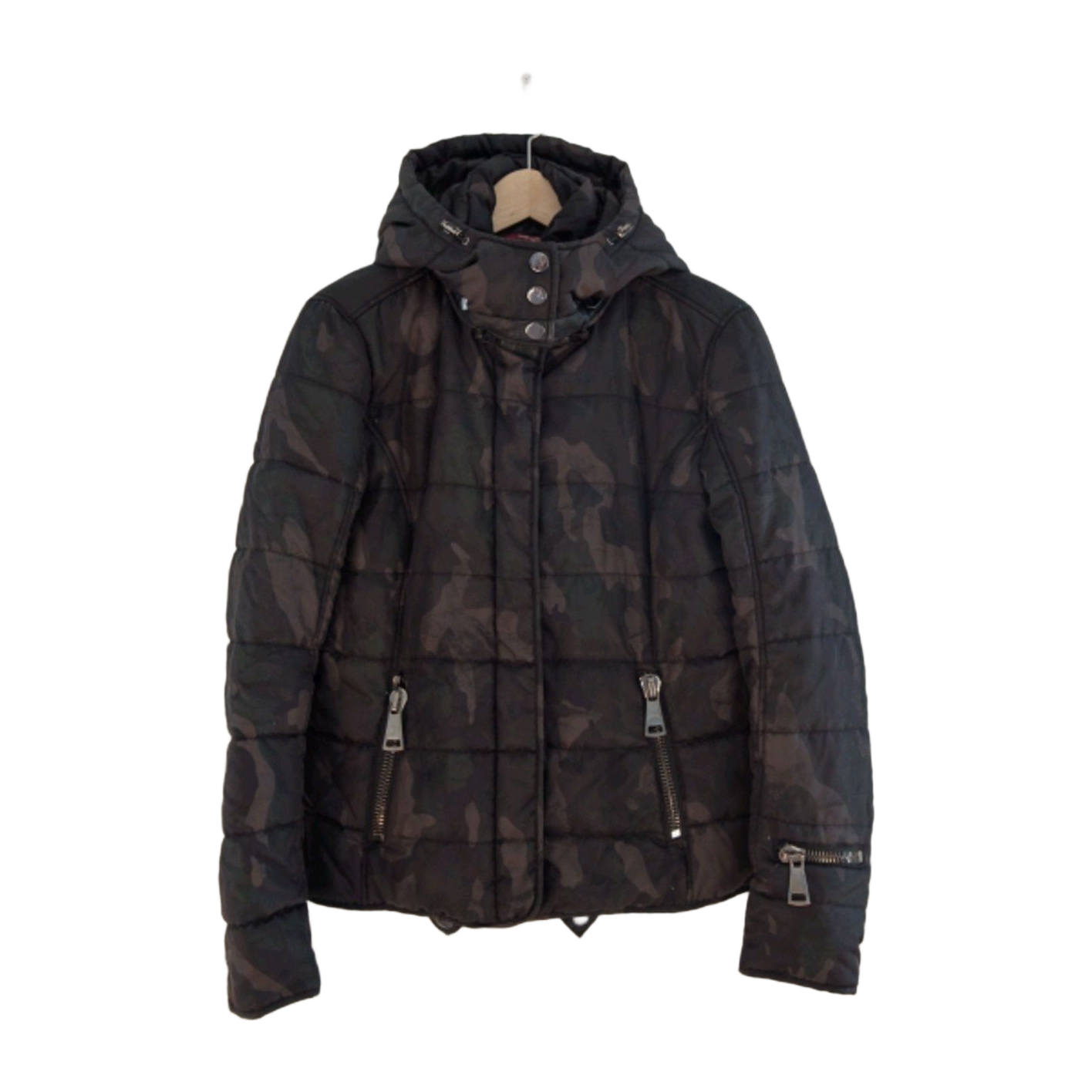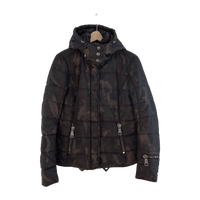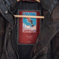 Authier makes luxury skiwear in Italy, and their jackets can cost over a 1000€. I found this one in Aspen Colorado but it's too small for me. Tags have been cut off, so materials are unknown. I'm guessing 100% down filling. Dark camo pattern.