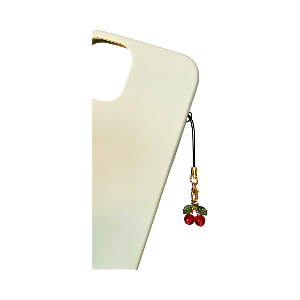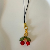 Söpö käsintehty kirsikkakännykkäkoru, kultaisilla yksityiskohdilla🍒