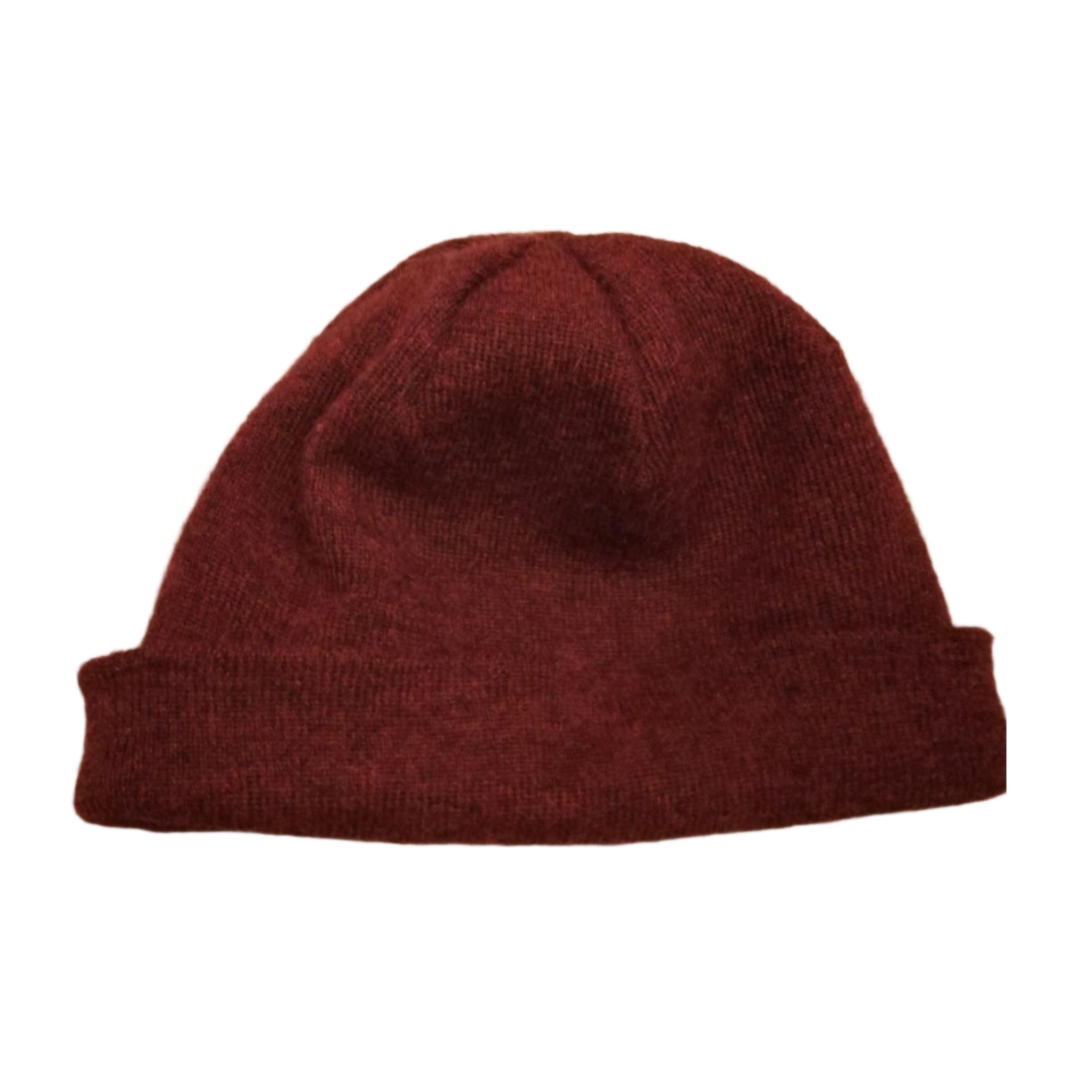 Viininpunainen/meleerattu burgundi pipo Alpalta. Pehmeää baby alpakka lankaa, kaksinkertainen ja lämmin. Käännettävä reuna eli pituutta on helppo säätää käännöksen leveydellä.