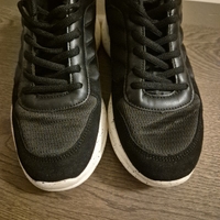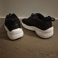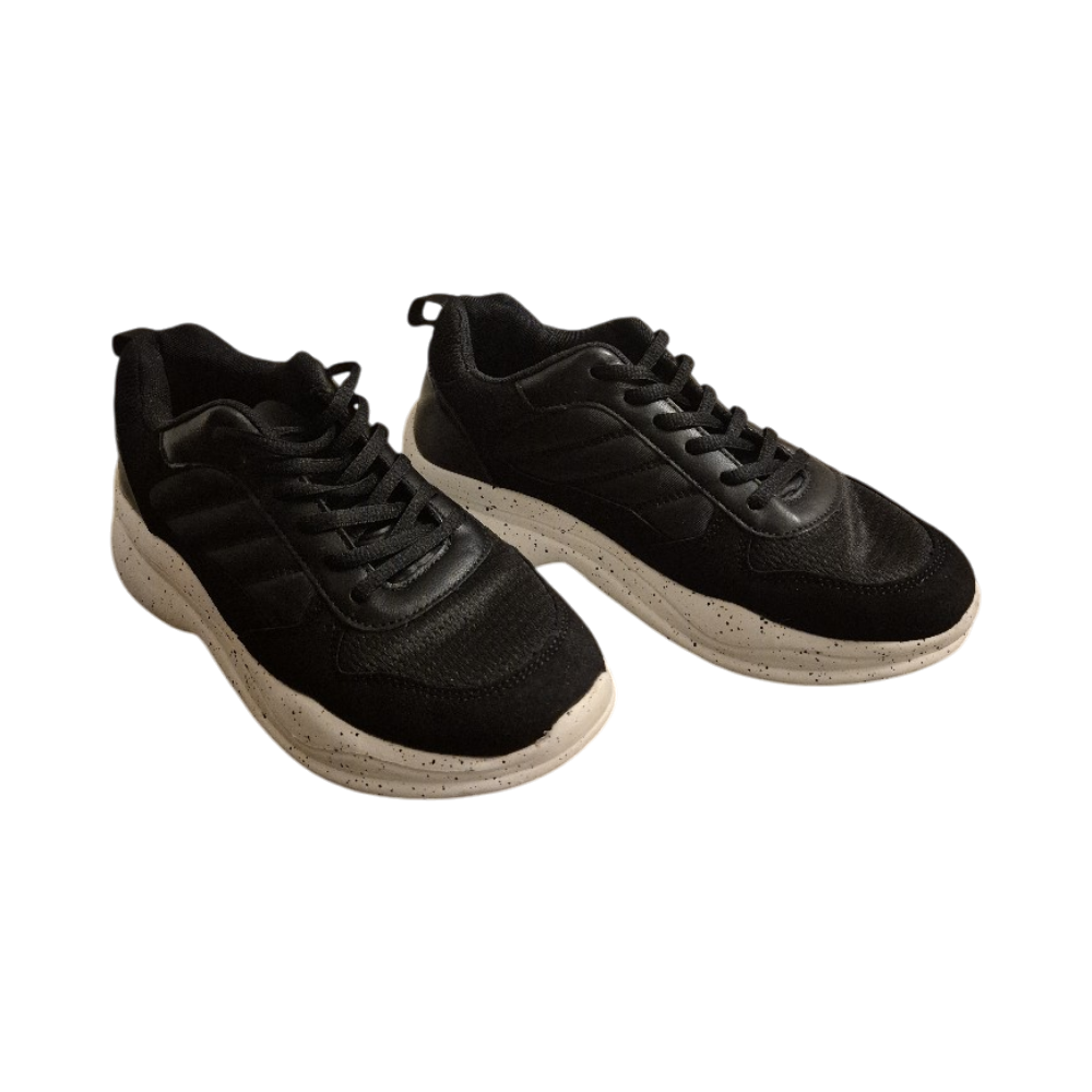 Mustat tennarit valkoisella pilkullisella pohjalla, hyväkuntoiset. Vähän käytetyt. Memoryfoam pohjallinen
