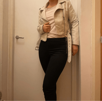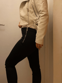 Naisten mustat slim fit housut hopeisella vetoketjulla.
