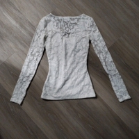 Myydään pitsinen valkoinen pitkähihainen koossa XS 🤍 joistakin kohdista repsottaa vähän lankoja, kuten 4. kuvassa.