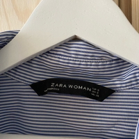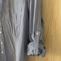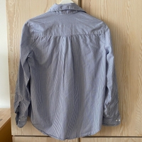 Valkosiniraidallinen pitkähihainen paita / pusero. Koko S. Materiaalilappu leikattu pois