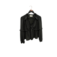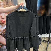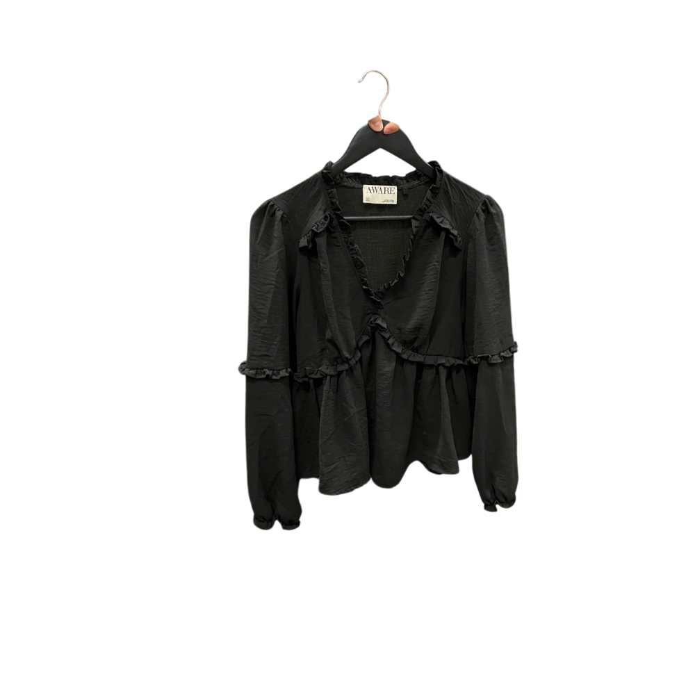Pitkähihainen, röyhelöyksityiskohtainen kevyt pusero.