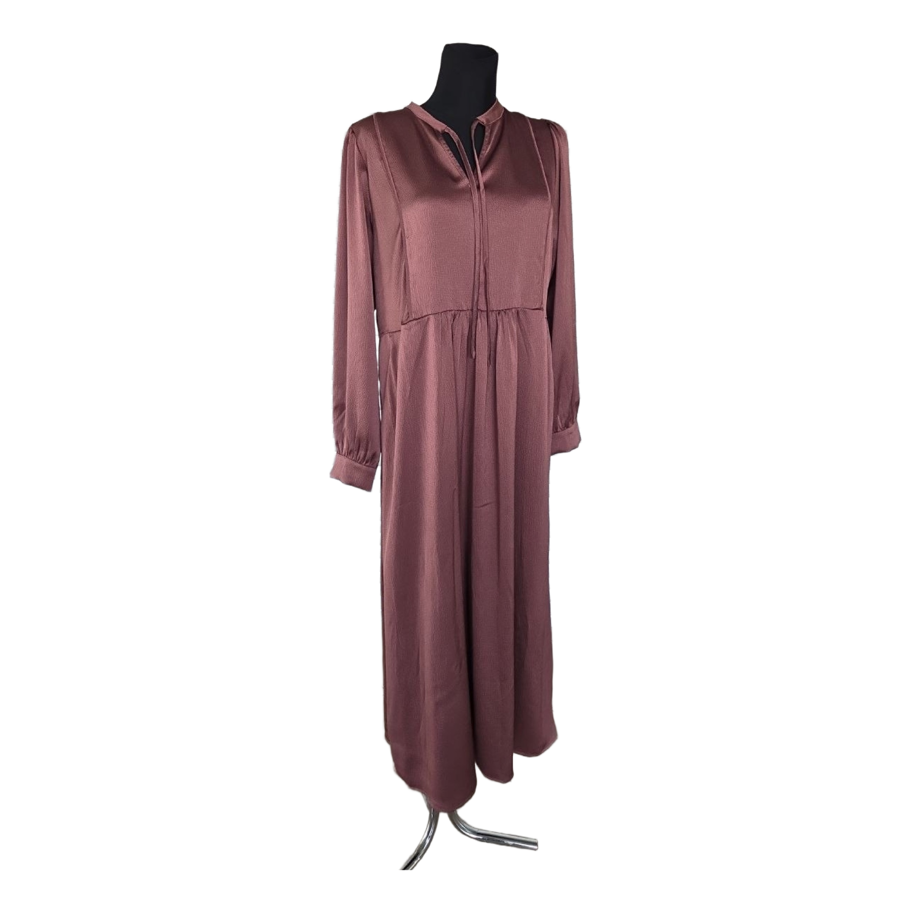 Midi dress with long sleeves and a tie neck detail. Size L/XL.