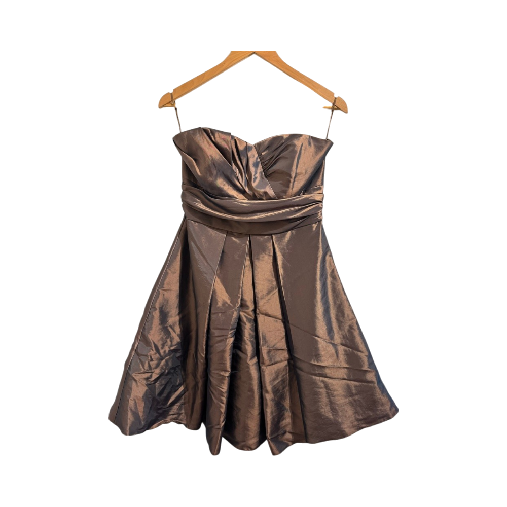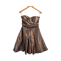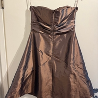 ruskeakultainen hihaton juhlamekko. Reisipituinen. Koko mielestäni pieni M (S-M).
