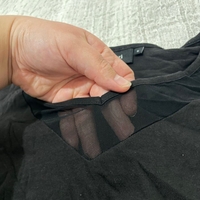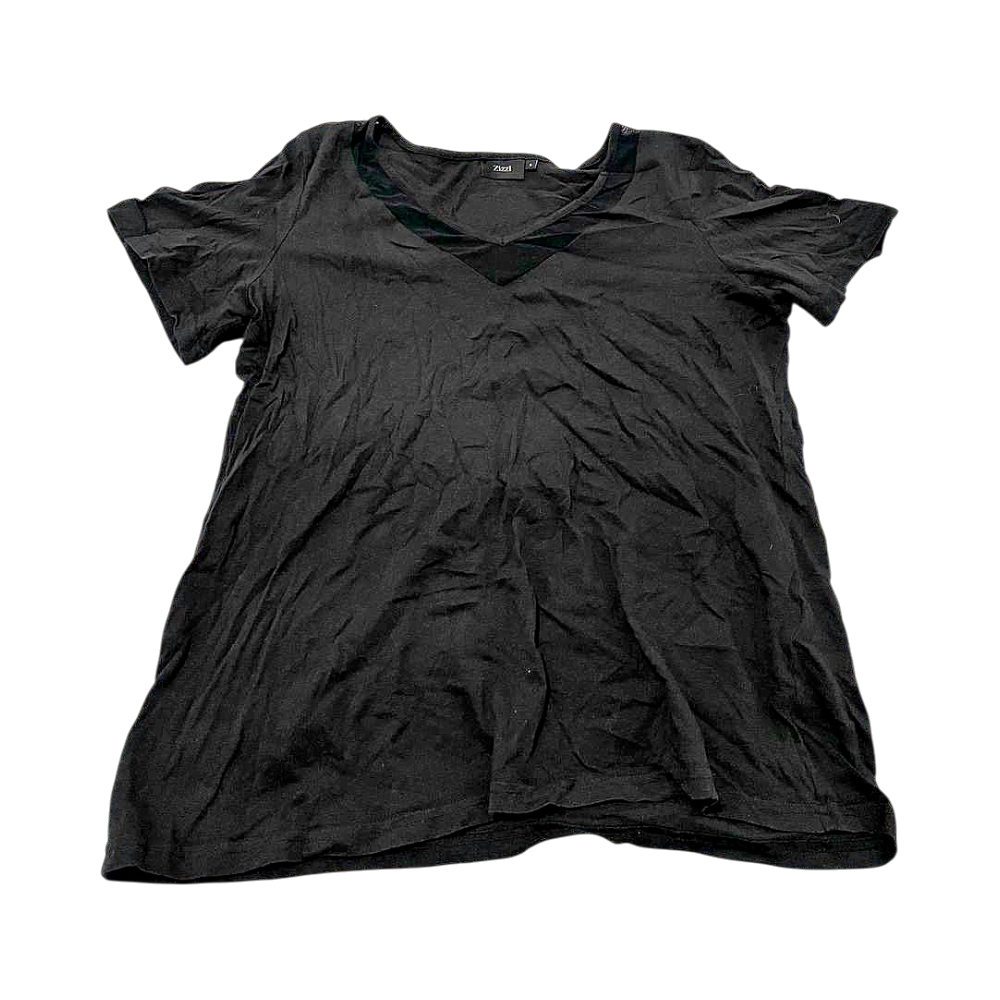 Zizzin t-paita kauniilla yksityiskohdalla kaula-aukossa. Zizzin kokoa S, eli vastaa noin L-XL. 95% luomupuuvillaa ja 5% viskoosia.