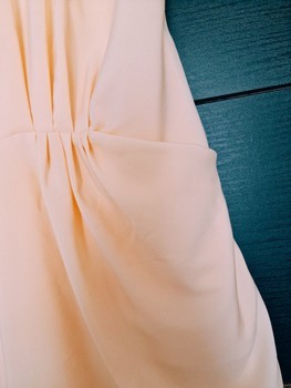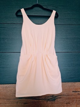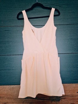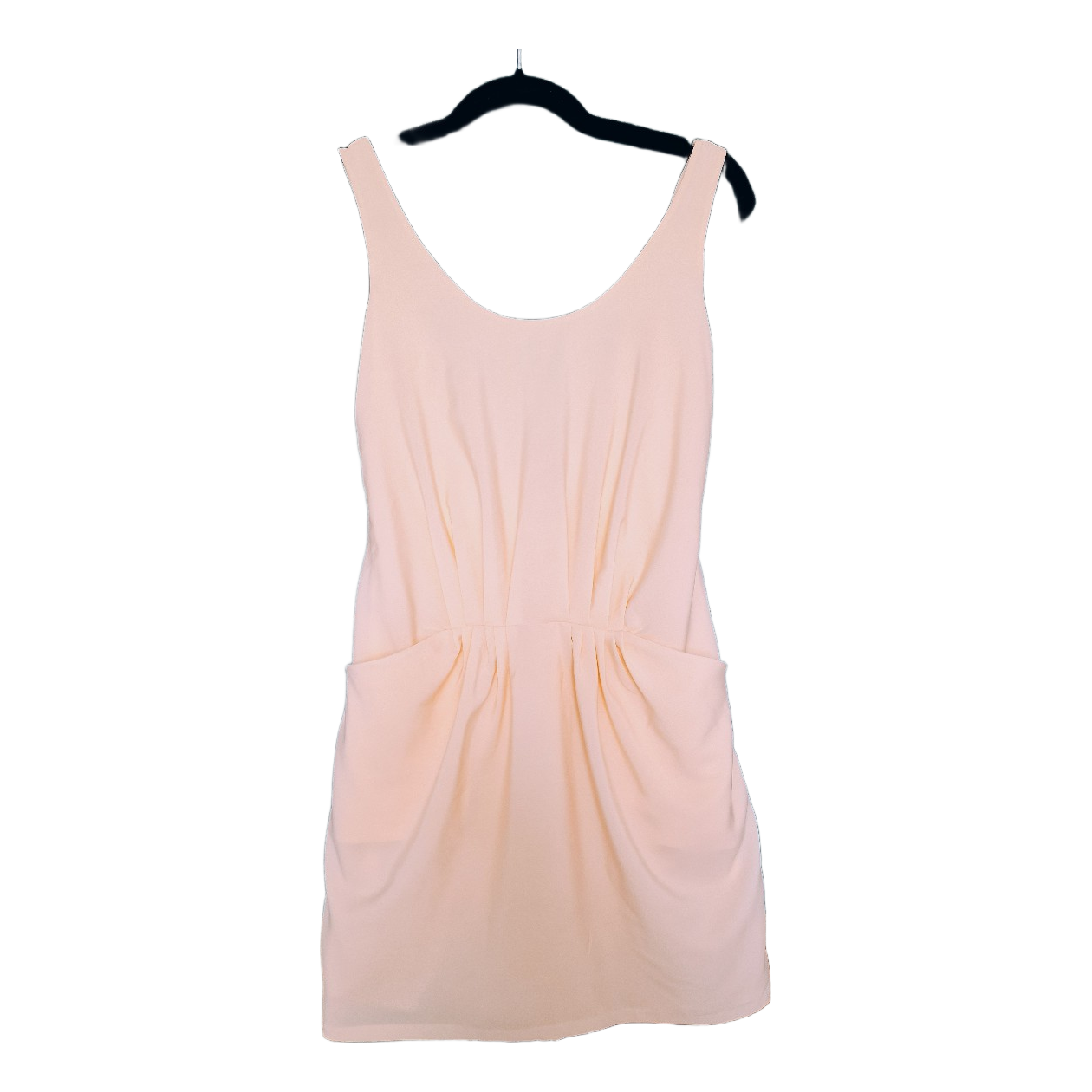 Mini dress in apricot color with pleated detail and side pockets. Features a sleeveless design. Size XS.