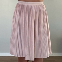 Kaunis vaaleanpunainen pliseerattu hame. Koko S/M (joustava vyötärö). Kevyt ja laskeutuva kangas, pituus midi. Sopii täydellisesti juhliin, arkeen tai toimistolle. Klassinen ja elegantti tyyli, joka on helppo yhdistää neuleeseen, toppeihin tai kauluspaitaan. Erittäin hyväkuntoinen.