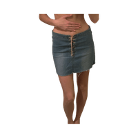 Blue denim mini skirt with front lace-up and raw hem.