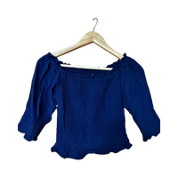 Naisille, lyhythihainen, joustava, rypytetty pusero. Käytetty pari kertaa