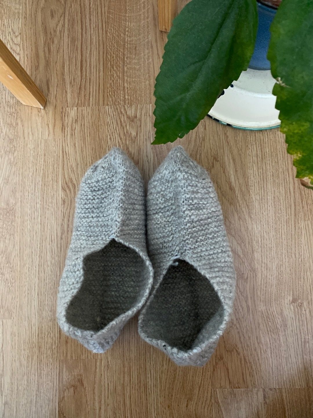 Käsintehdyt tossut🤍 toisessa pieni purkauma. Koko noin 37-40.