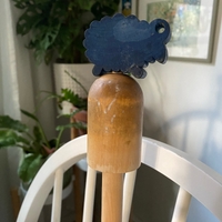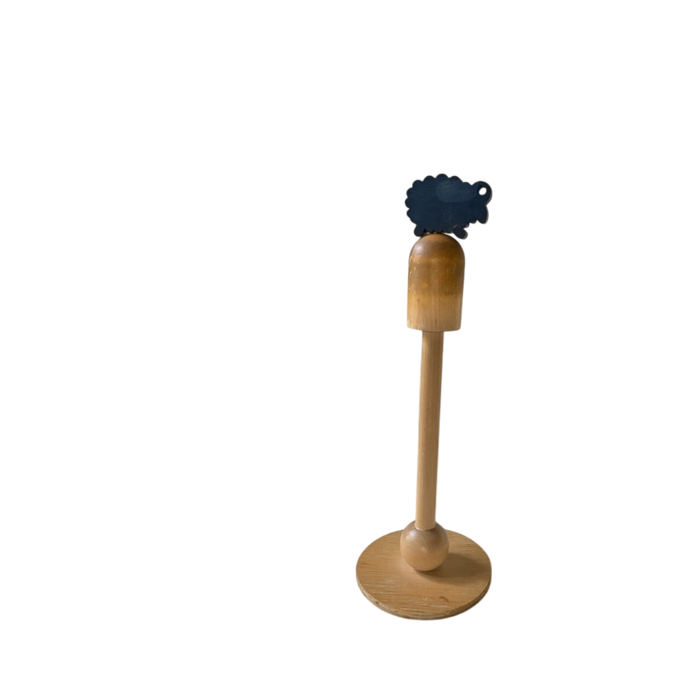 Puuinen talouspaperiteline / langanpitimen kara / koriste söpö sininen puinen lammas päällä. Merkki aarikka.