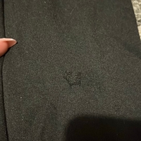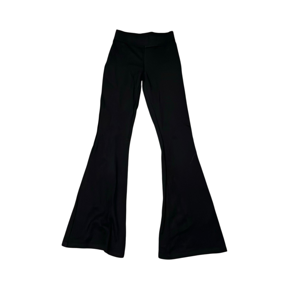Mustat leveälahkeiset trikoot, pieni kuluma polvessa.