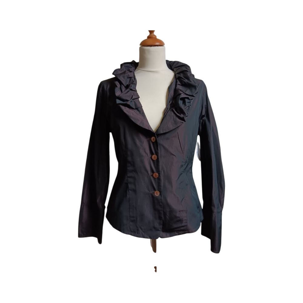 Metallinhohtoinen, juhlava jakkumainen paitapusero.