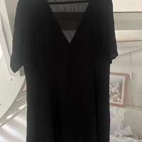 Mustavärinen lyhyt mekko, napit edessä, lyhyet hihat.