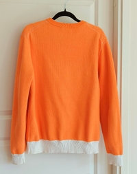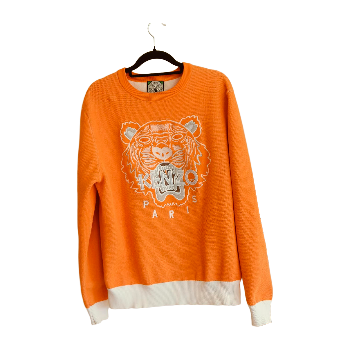 Oranssi Kenzo sweater hyvä kunto pesty muutamia kertoja vähän haalistunut pesussa. Reilu koko menee hyvin myös M koolle paksu kudottu puuvilla 100 %.neule.