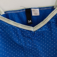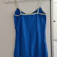 Lähes uudenveroinen ihana sininen toppi valkoisilla pilkuilla, koko 34(XS). Joustavaa puuvillaa.