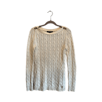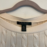 Luonnonvalkoinen / vaalea Ralph Laurenin neulepaita palmikkoneulosta, kultaiset yksityiskohdat. Kokoa XS, mutta sopii mielestäni myös S-M kokoiselle, riippuen miten haluaa istuvan. 🤍 Erinomaisessa kunnossa, pidetty tosi vähän!
