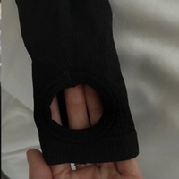 Cropped long-sleeve gym top with back cutout and thumb holes.
