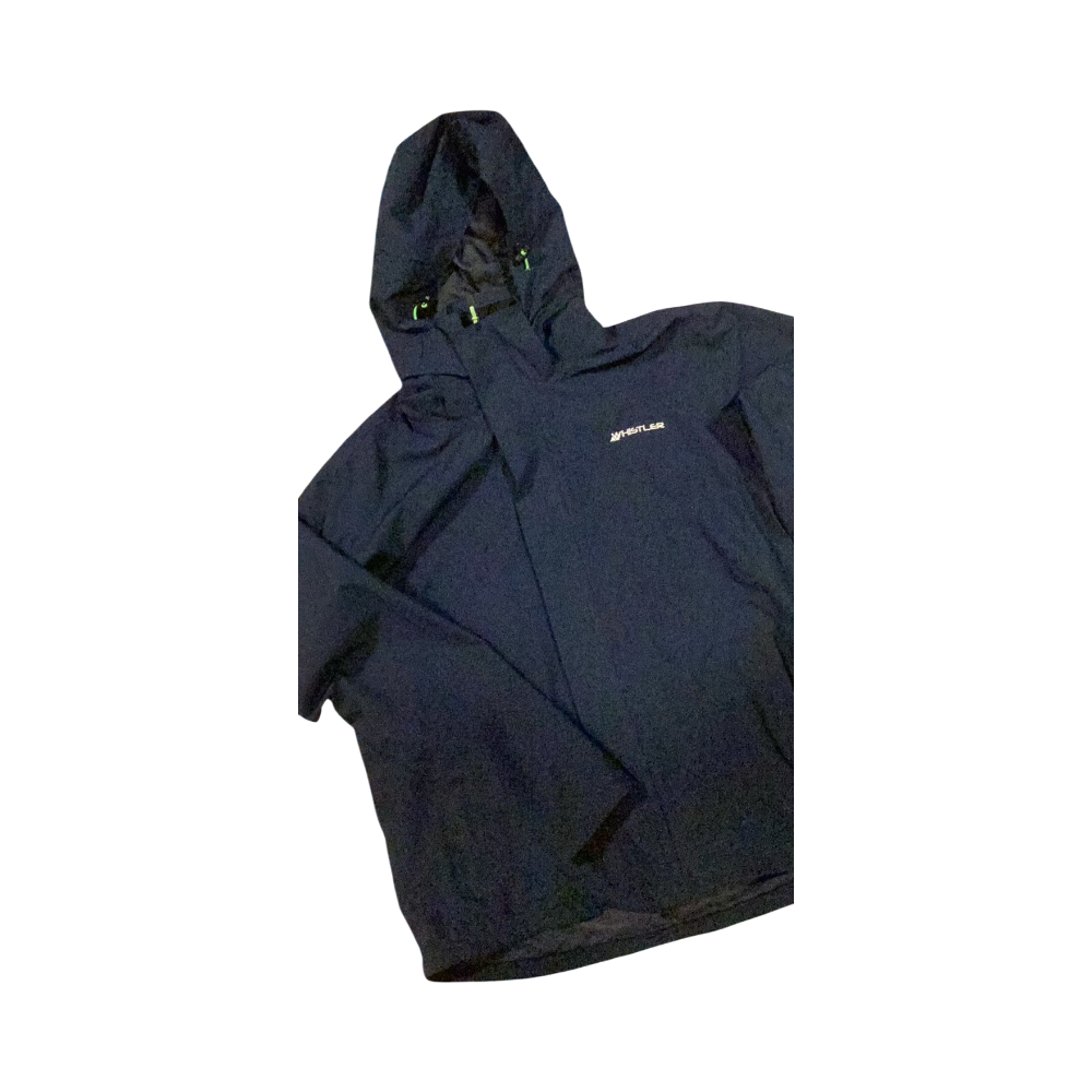 Tummansininen softshell-takki, sääsuoja, kiristysnyörit helmassa. Verkkovuori. Irrotettava huppu. Seissyt kaapissa, lähes käyttämätön.