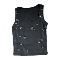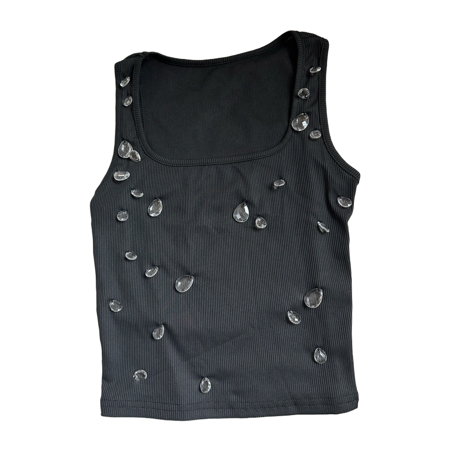 Musta toppi koristeellisilla läpinäkyvillä kivillä edessä xs. Kristallitoppi. Nouto Tre onnistuu myös, katso muutkin tuotteeni🌸
