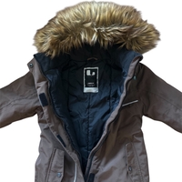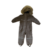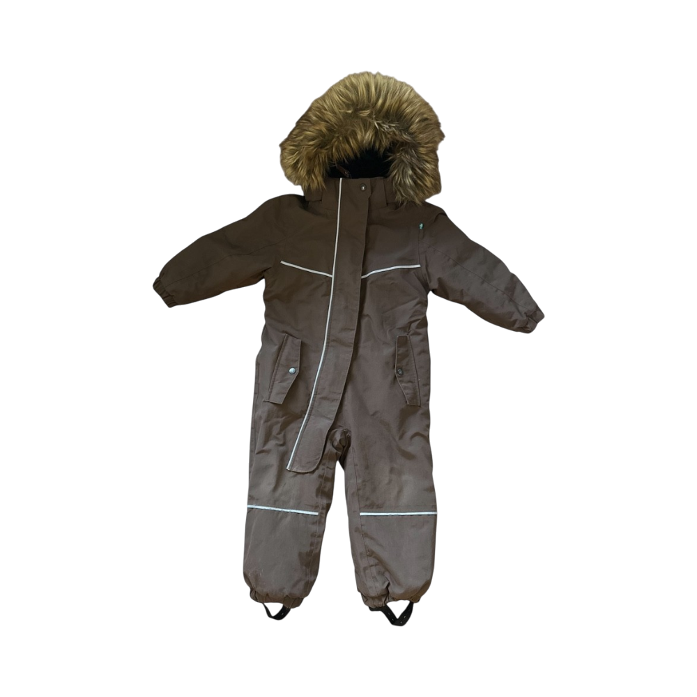 Ihana pähkinänruskea talvihaalari. Pientä pehmentymää polvien kohdalla ja muutama huomaamaton naarmu sisälahkeessa. Kangas ehjä ja tahraton. Yhden talven pakkasajan ollut käytössä, yleisilme erittäin hyvä! Lahkeet ja hihat saa käännettyä.